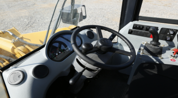 • Sliding side window and AC with fresh air circulation provide operator comfort